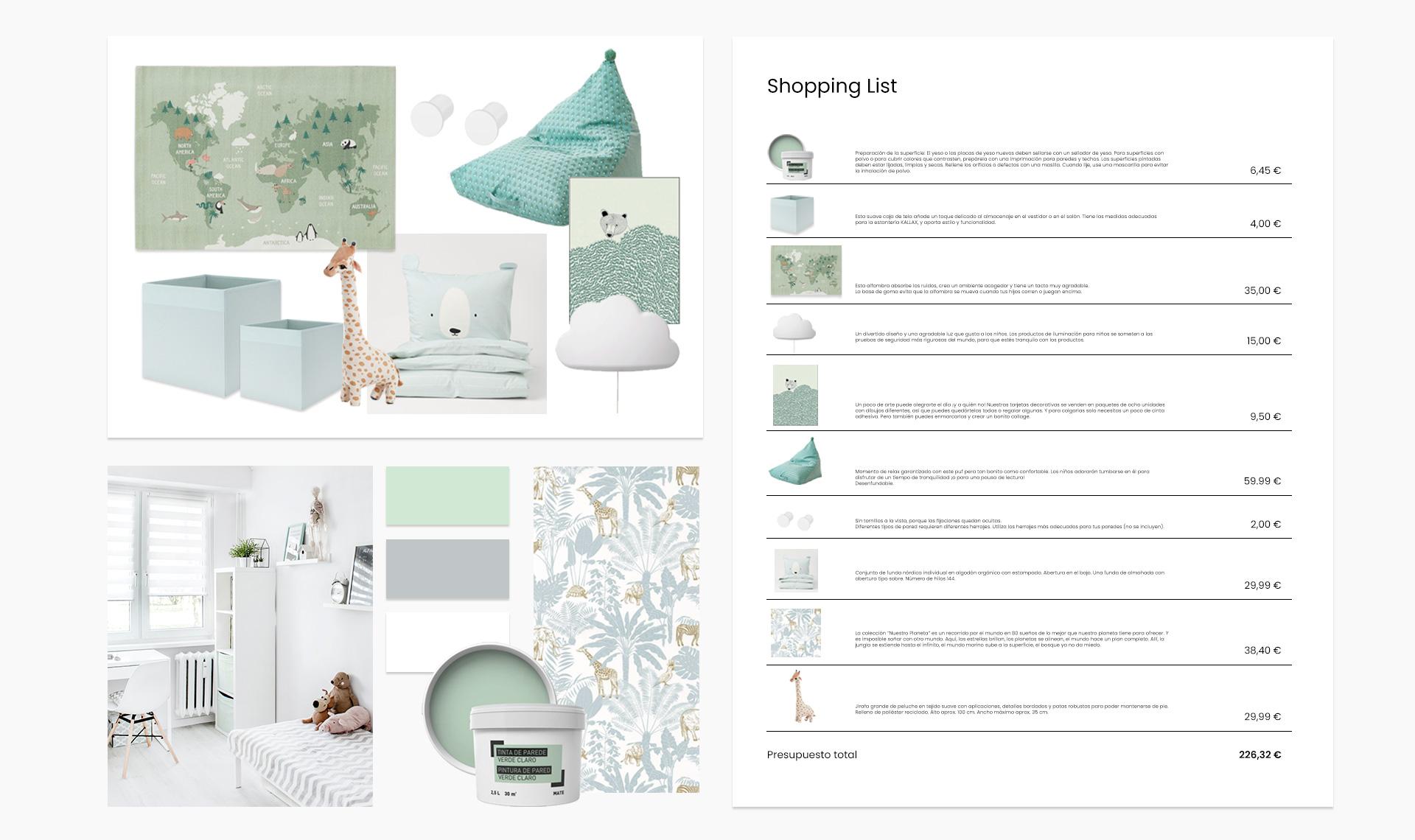 Diseñaremos un proyecto personalizado y adaptado al presupuesto que decidas. Recibirás tu proyecto de diseño en 2D o 3D y una Shopping List con todas las piezas que necesitas para transformar tu casa a tu ritmo. Además, podrás resolver tus dudas y hacer cambios.